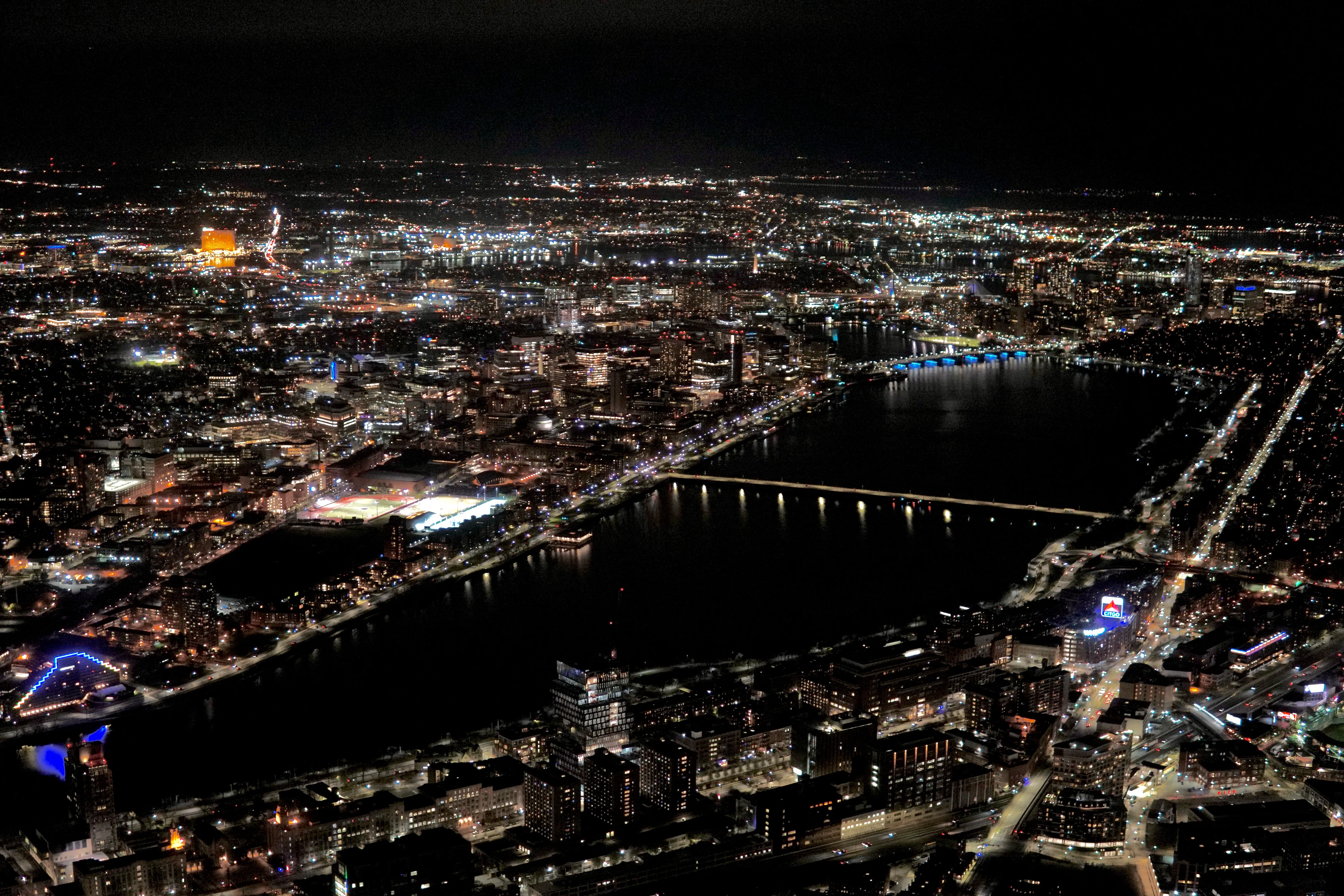 在 Boston 上空俯拍 Harvard 桥两岸。